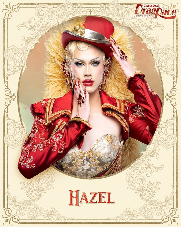 Competing against ten other Canadian drag artists for a $100,000 prize and the title of Canada’s Next Drag Superstar, the duo—who are also best friends outside of drag—were lip syncing for their lives last week in a fiercely heated performance of Avril Lavigne and Nicki Minaj’s “Dumb Blonde.” Though Hazel was eliminated, the audience can appreciate each artist’s distinct aesthetics and genuine approach to drag throughout the competition.